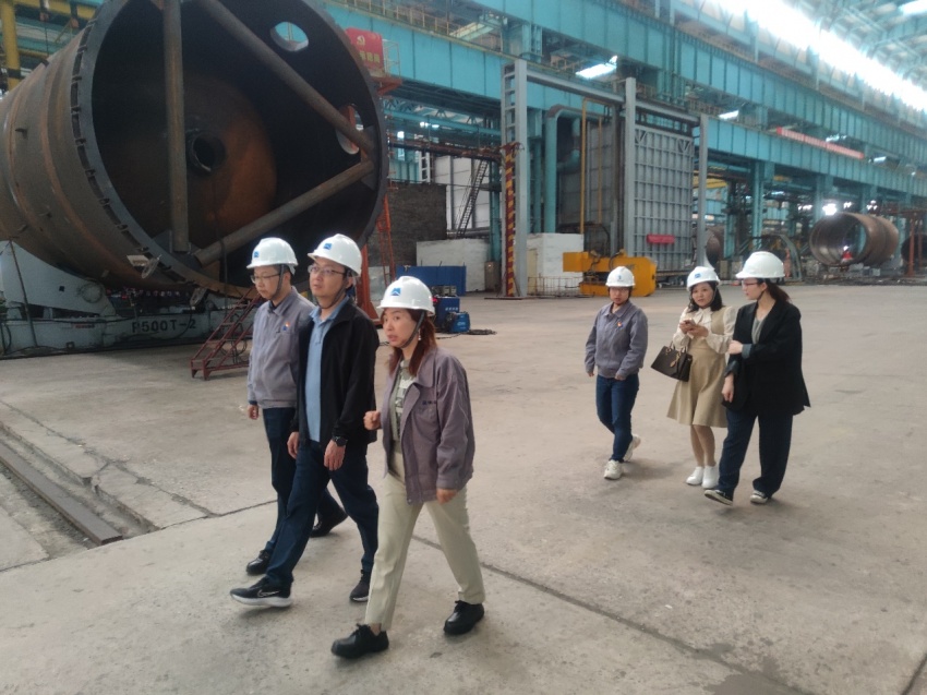 为进一步规范员工实习管理工作,加强与实习单位的校企合作,10月12日上午,VSport体育、轨道交通公司副经理陈小中、机电教研室汪小芳、焊接教研室乔琦一行前往二重(镇江)重型装备有限责任公司(以下简称“镇江二重”)看望跟岗实习员工并开展企业调研。公司技术总监孙亚杰、工程师朱莎莎、人力资源部部长潘辰、人事专员章婕参加了洽谈会。