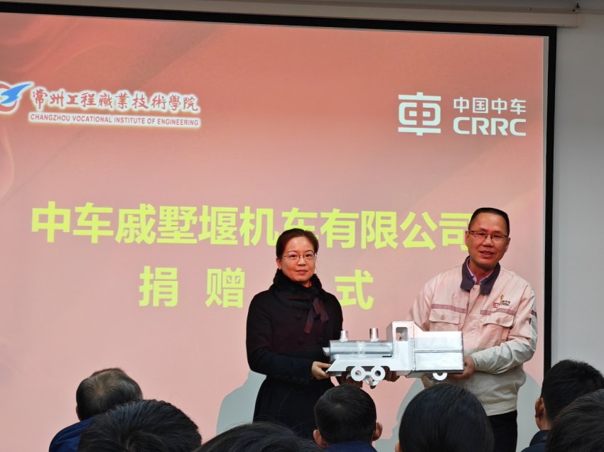 随后,张忠向公司捐赠火车头模型,预示着公司勇争教育行业“火车头”,努力实现专业建设和校企合作的高质量发展。张亮代表公司接收捐赠并表达由衷感谢。