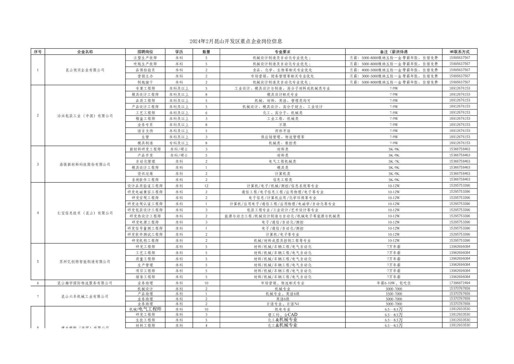 20240012昆山开发区重点企业岗位招聘信息