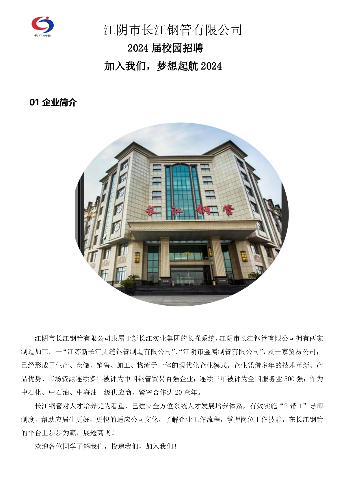 20240018江阴市长江钢管有限公司招聘信息