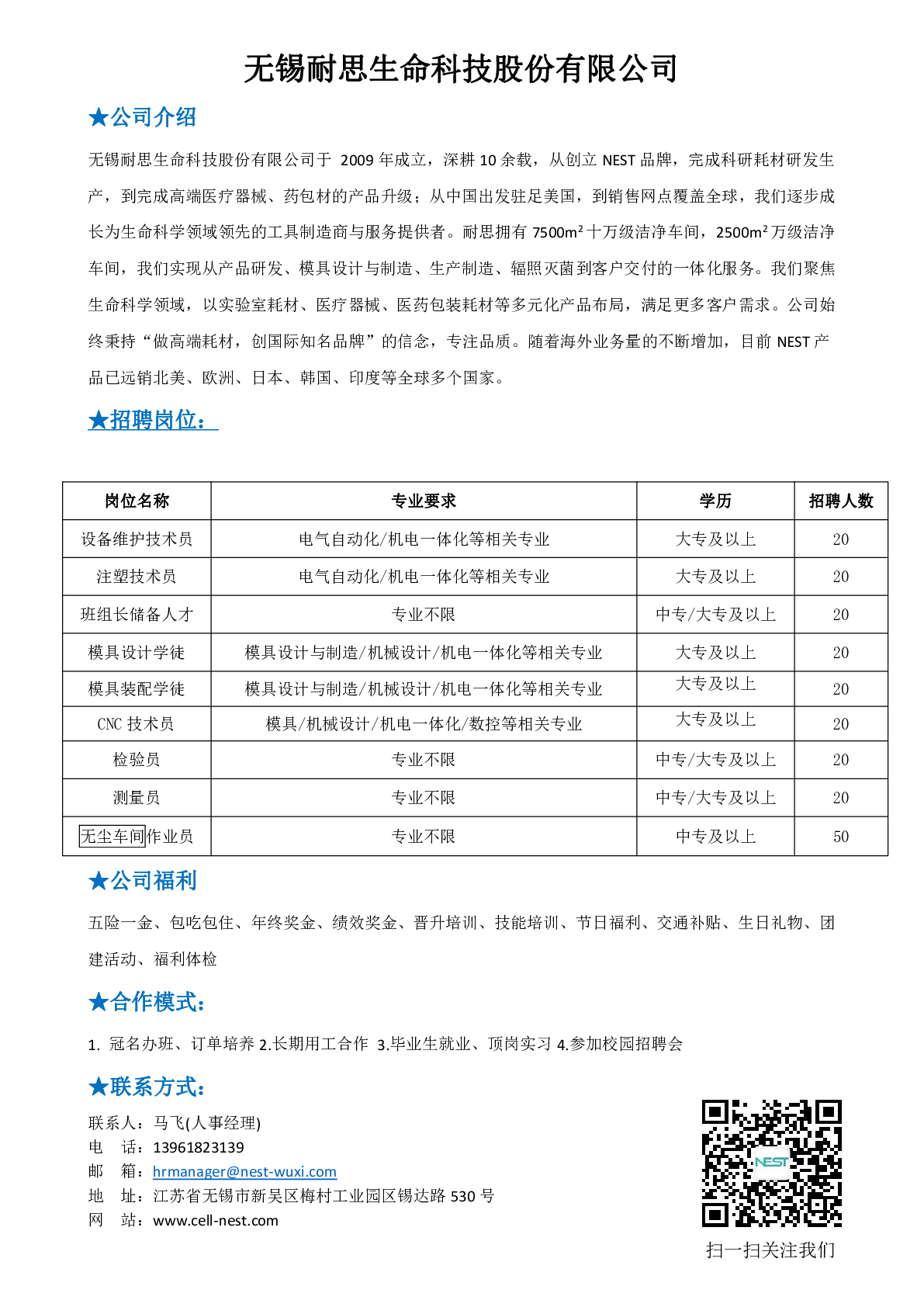 20240019无锡耐思生命科技股份有限公司招聘信息