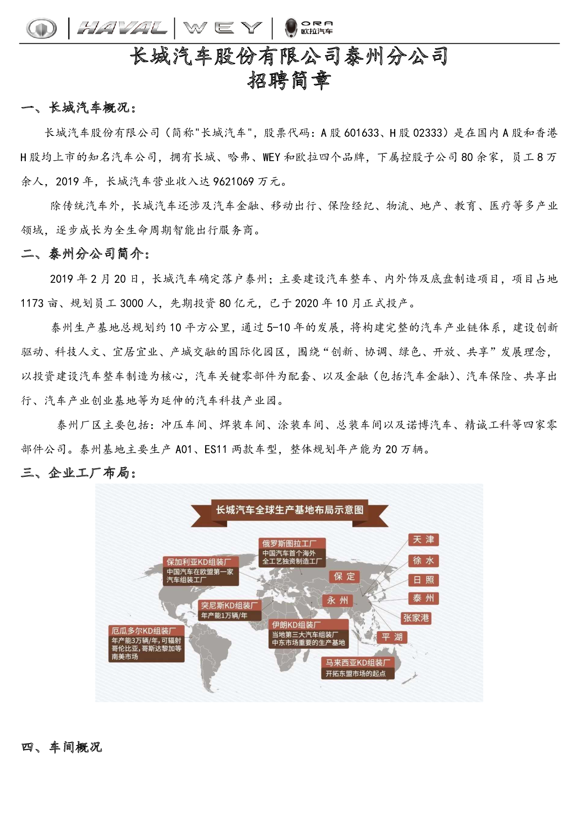 20240032长城汽车股份有限公司泰州分公司招聘信息
