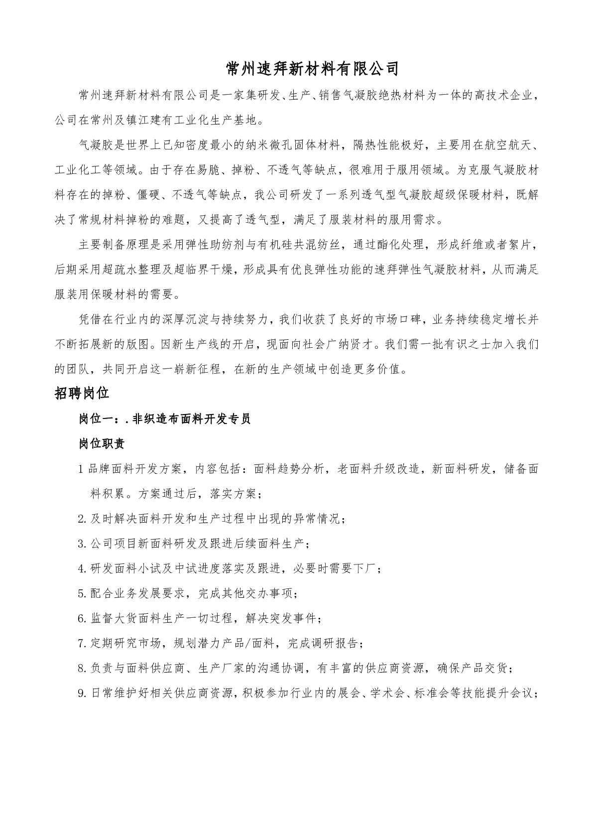 20240048常州速拜新材料有限公司招聘信息