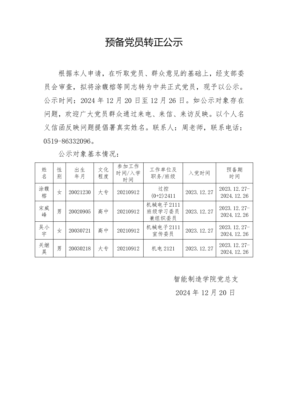 拟接收预备党员公示