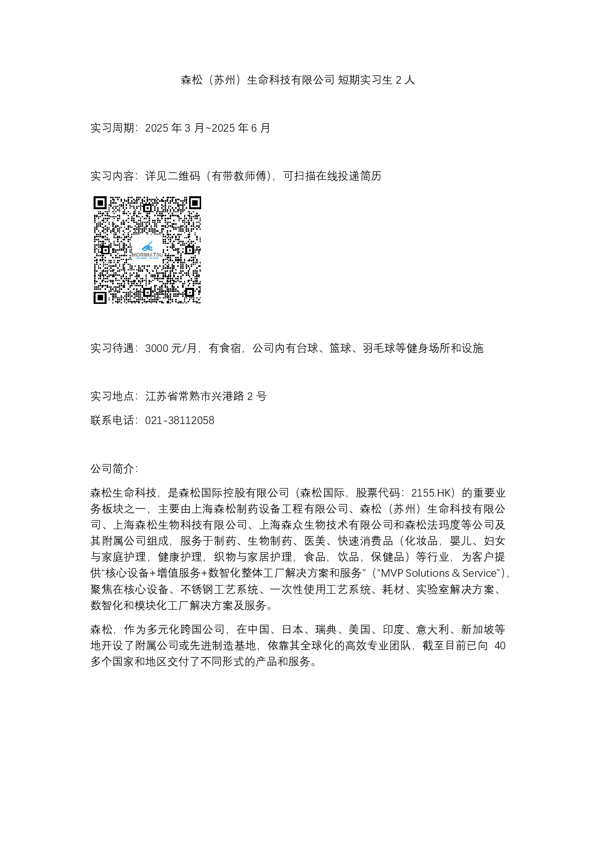 20250012森松(苏州)生命科技有限公司招聘信息