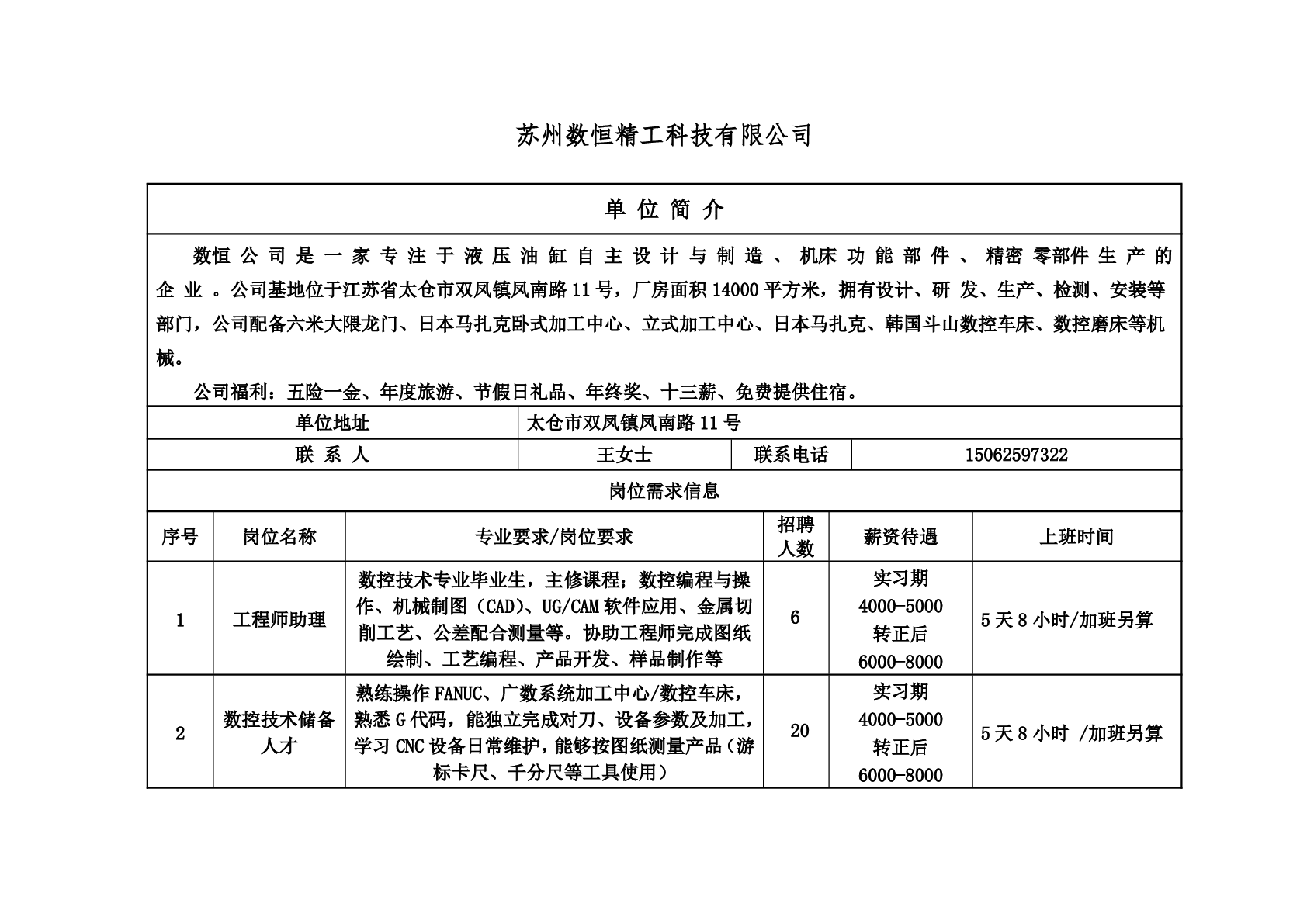 20250028苏州数恒精工科技有限公司招聘信息