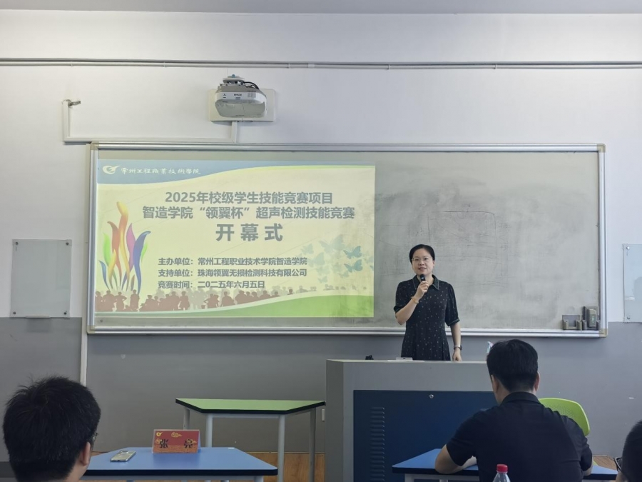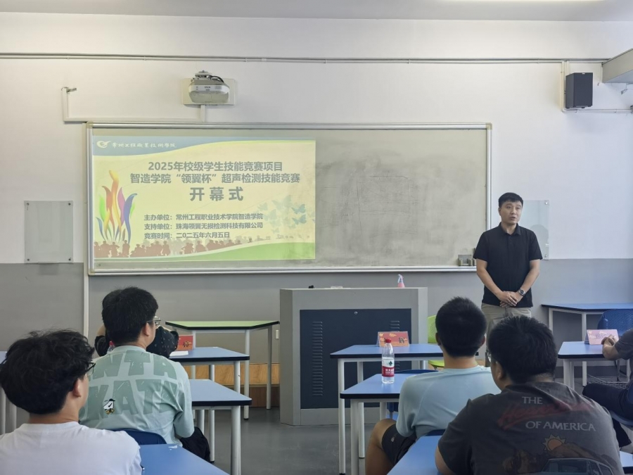 6月5日,VSport体育“领翼杯”超声检测技能竞赛在常州科教城现代工业中心4号楼焊接与检测实训基地隆重举行。开幕式由竞赛项目负责人、理化测试与质检技术专业杨虹老师主持,珠海领翼无损检测科技有限公司总经理黄辉、经理陆姝晓、VSport体育副经理张亮、教研室主任徐敬岗、专业任卫东、姚达雯老师出席了开幕式。开幕式由张亮致欢迎辞,黄辉代表企业发言,共同传达了对此次竞赛的支持与期待。