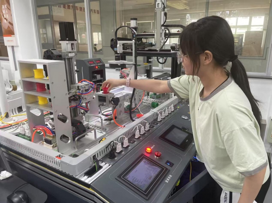 决赛现场,选手们沉着应战,展现出卓越的专业素养。在PLC程序编程环节,参赛者指尖翻飞,精准构建控制逻辑;机器视觉调试项目中,选手们细致调整参数,实现精准识别;变频器调试阶段,更体现出对电机控制的深刻理解。评委组采用"过程+结果"双维度评分体系,通过12项细化指标对操作规范性、完成质量等进行全方位考核,确保竞赛公平性。