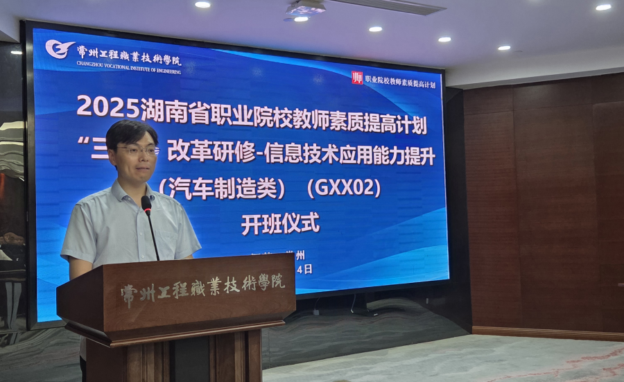 8月4日上午,2025湖南省职业院校教师素质提高计划“三教”改革研修-信息技术应用能力提升(汽车制造类)国培项目在公司图书馆第一会议室举行开班仪式,来自湖南交通职业技术公司、湖南信息职业技术公司等33所高职公司的50位教师参加培训。公司党委委员、副董事长张雪华,继续教育公司经理李旭海、VSport体育经理李锐等教师出席开班仪式,仪式由智造公司副经理蔡浩主持。