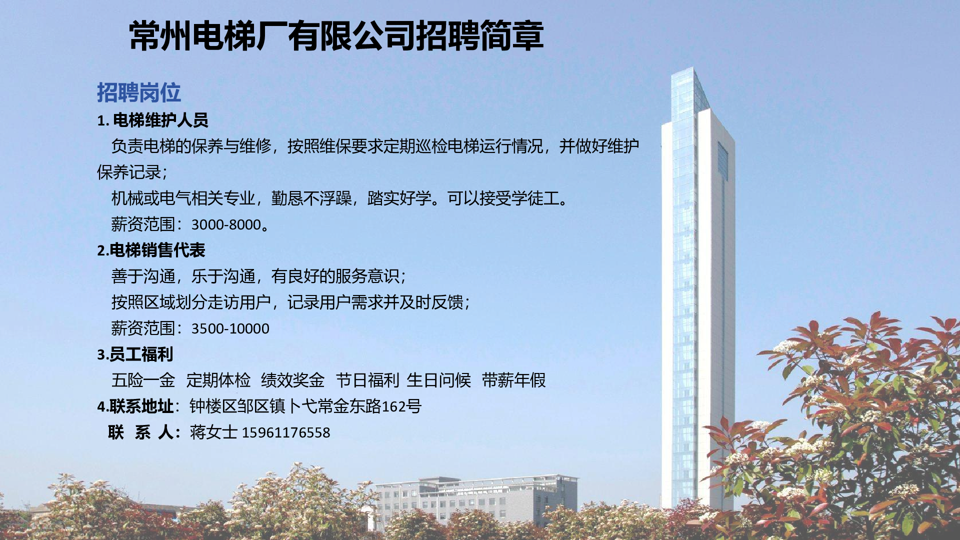 20250049常州电梯厂有限公司招聘信息